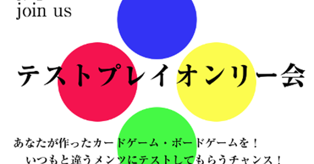 終了 2016年10月9日(日) 10月9日(日)第2回「テストプレイオンリー会」 ※製作者以外も大々的に募集します by レイ(四等星) 東京都千代田区 秋葉原外神田1-11-5 秋葉原スーパービル8F